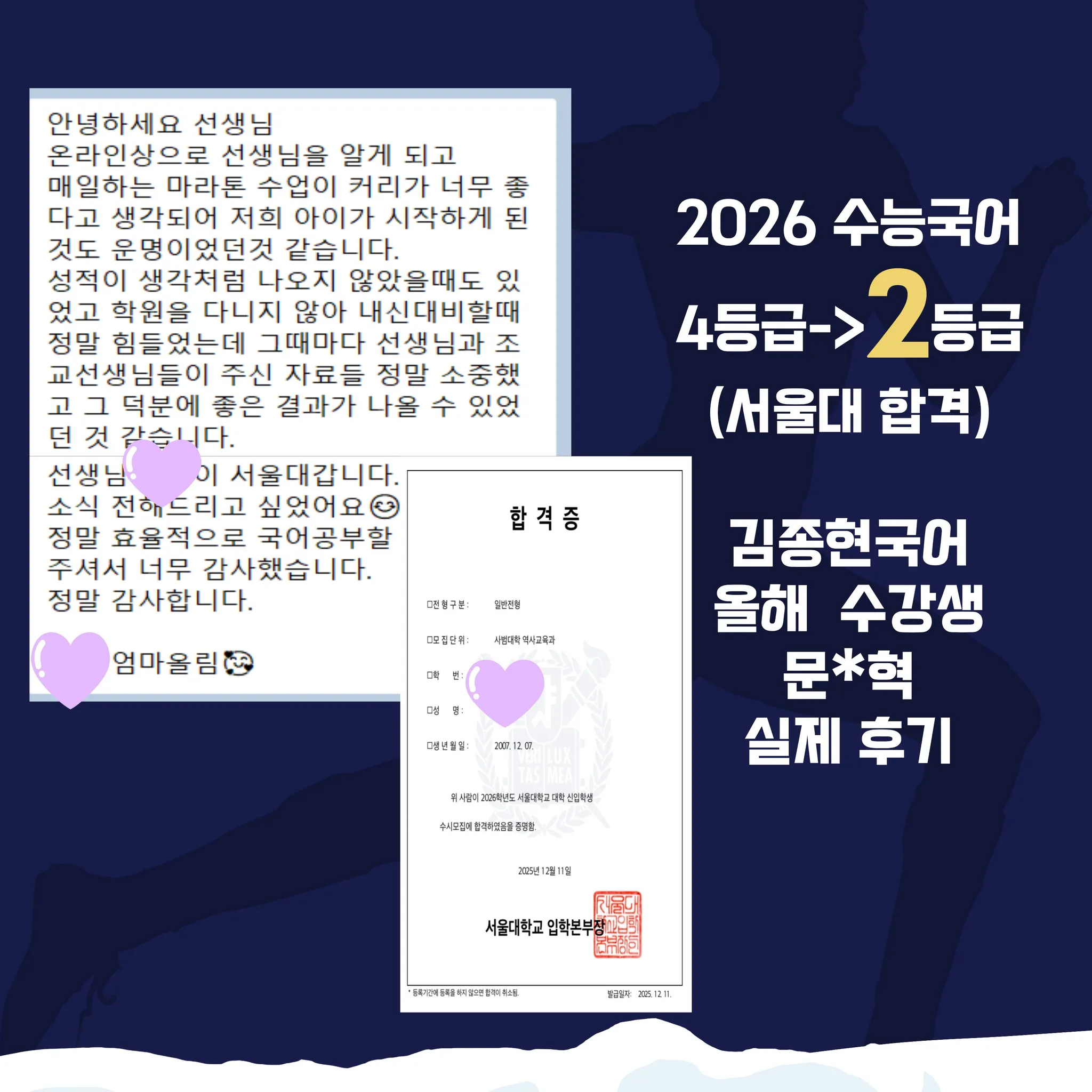 ■ 성적 : 최저 맞춤 - 서울대학교 합격, 6모 4등급에서 수능국어 2등급 달성