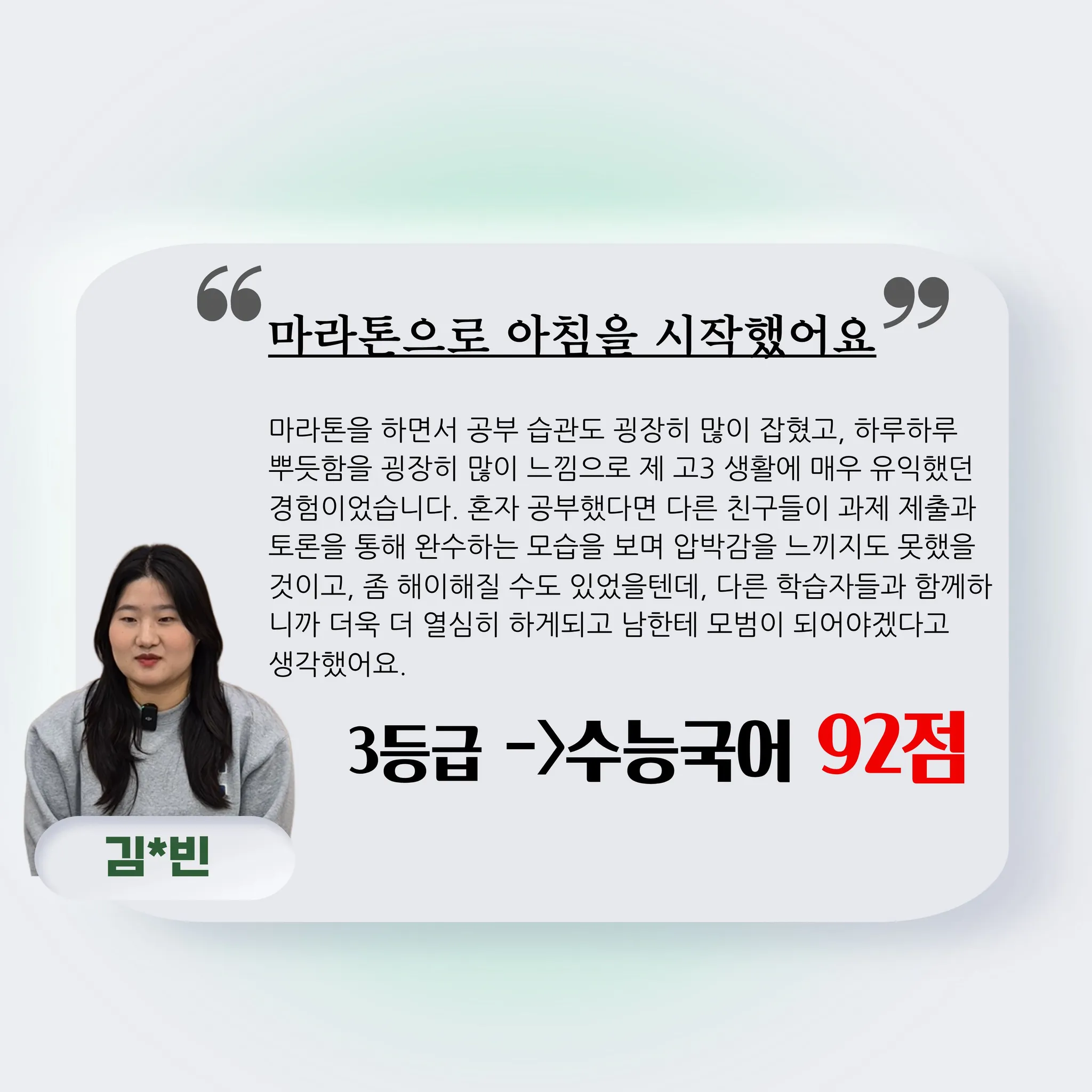 ■ 성적 : 3모 3등급에서 수능 국어 92점 달성