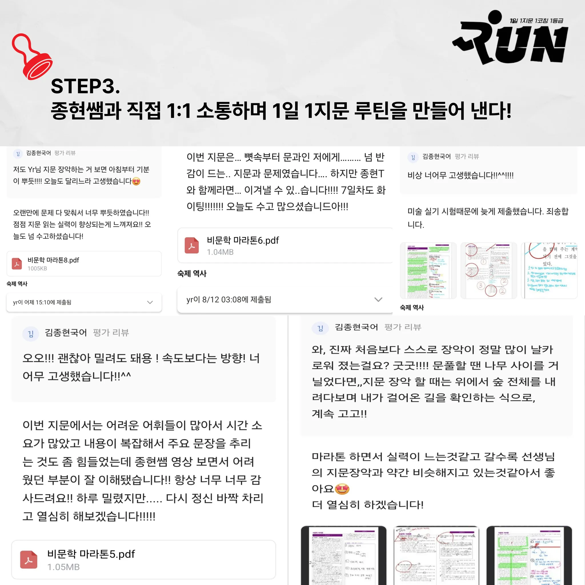 종현쌤이 직접 확인하고 읽어보고 1:1로 학습 피드백을 드립니다.