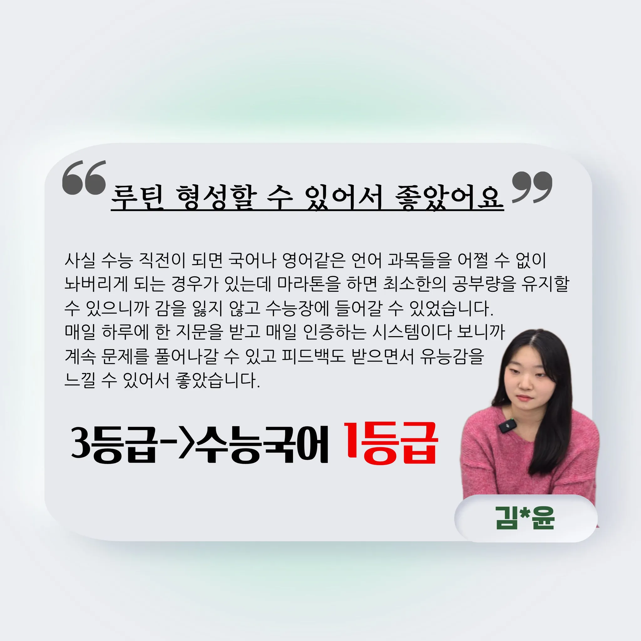 ■ 성적 : 3모 3등급에서 수능국어 1등급(언매) 달성